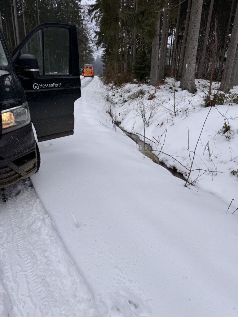 Die Feuerwehr der Gemeinde Glashütten wurde alarmiert, da aus einem angrenzenden Waldgebiet größere Wassermengen auf die Straße liefen und der vorhandene Kanal beziehungsweise Ablauf die